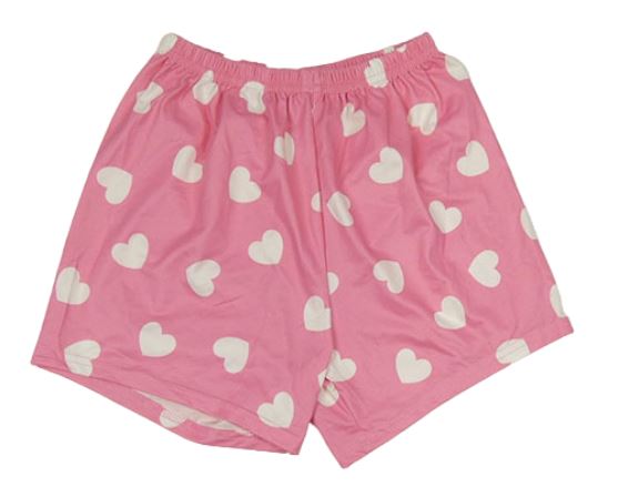 Ružové pyžamové kraťasy s bielými srdiečkami SHEIN