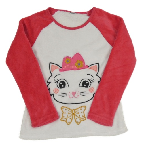 Bielo-ružové plyšové pyžamové tričko s mačkou kids