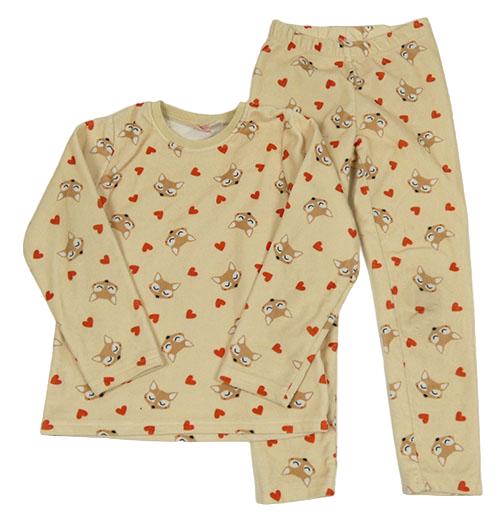 Béžové plyšové pyžama s liškami a srdiečkami Lupilu