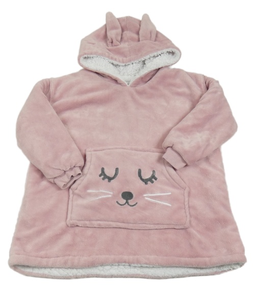 Svetloružová plyšová zateplená oversize dlhá mikina s vreckom s čumáčkem a kapucňou s uškami BIG SOFTY