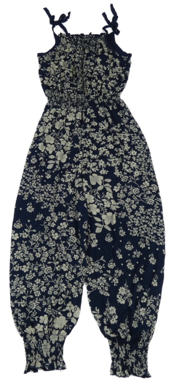 Tmavomodrý kvetovaný ľahký nohavicový overal