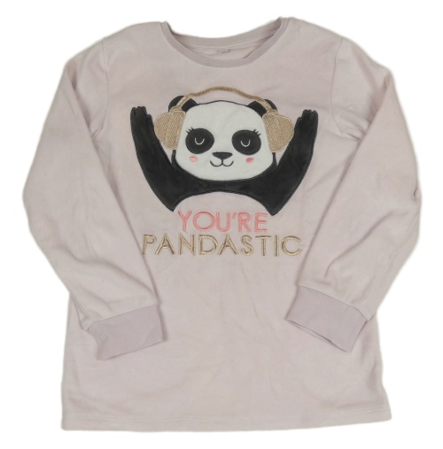 Pudrová plyšová pyžamová mikina s pandou a nápismi C&A