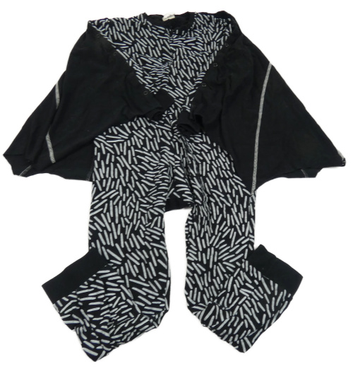 Čierno-svetlosivý vzorovaný overal s pláštěm - netopýr