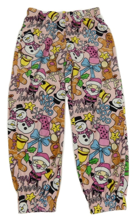 Ružovo-farebné plyšové pyžamové nohavice s vánočním motívom