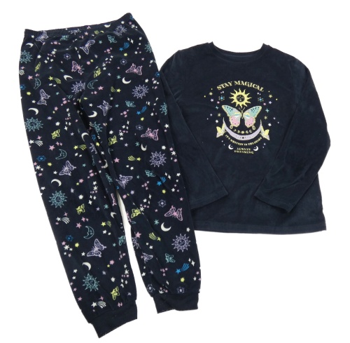 Tmavomodré plyšové pyžama s motýlikmi Primark