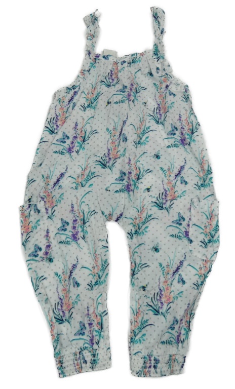 Biely ľahký nohavicový overal s kvetinami a včelami