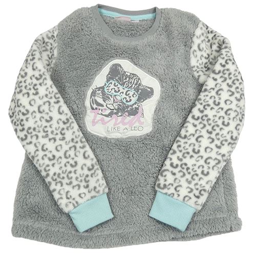 Sivo-biela chlpatá pyžamová mikina s mačkou Alive