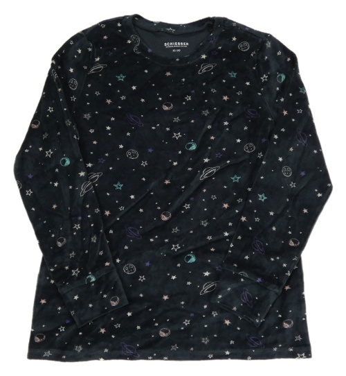 Antracitové zamatové pyžamové tričko s hviezdami a planetami