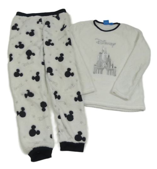 Biele chlpaté pyžama s hradom a Mickey Mousem Disney