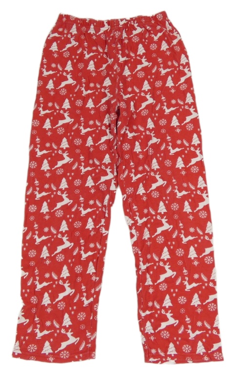 Červené pyžamové nohavice so sobmi a stromky