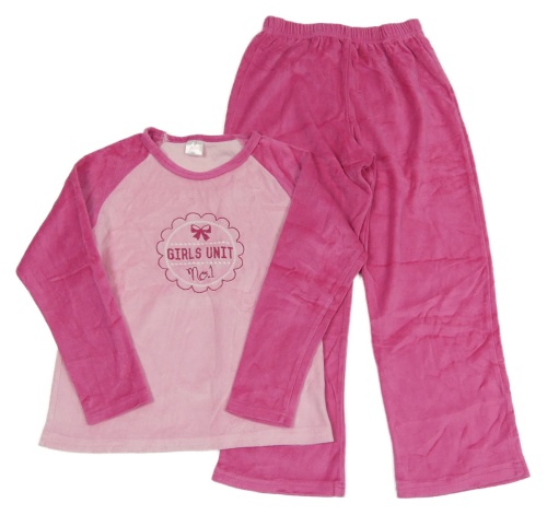 Ružovo-tmavoružové zamatové pyžama s nápismi a mašlou alive