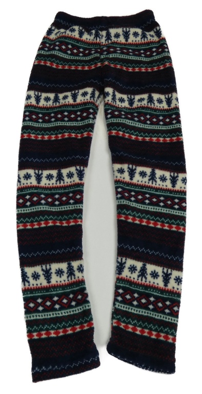 Tmavomodrdo-červeno-zelené vzorované chlpaté pyžamové nohavice