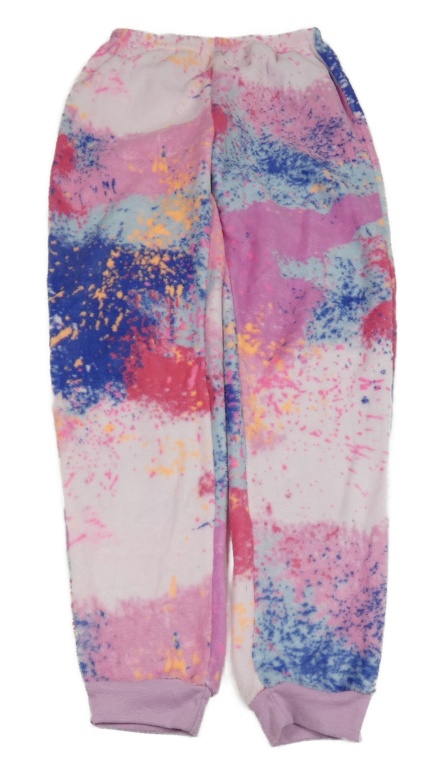 Ružovo-tmavomodro-fialové vzorované plyšové pyžamové nohavice