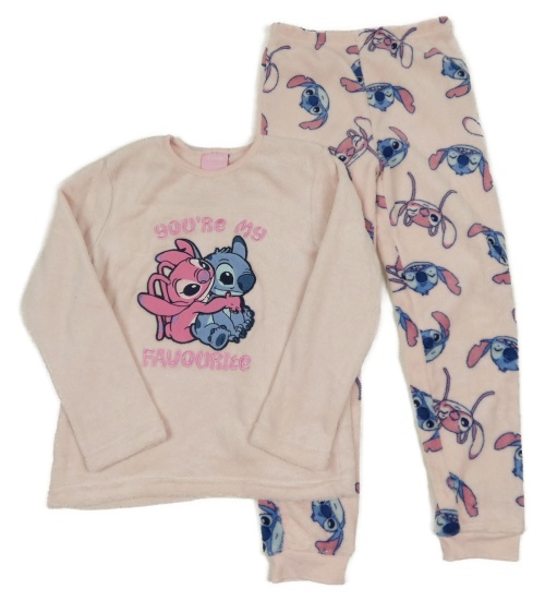 Svetloružové chlpaté pyžama so Stitchem a Angelou Disney