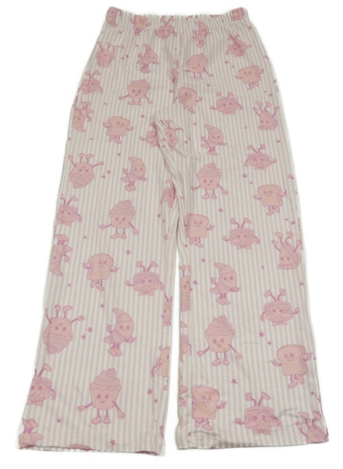 Bielo-ružové pruhované pyžamové nohavice s dortíky