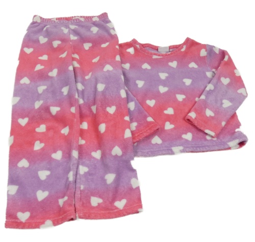 Ružovo-fialové chlpaté pyžama so srdiečkami