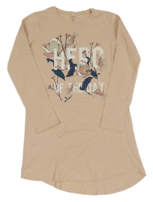 Pudrová nočná košeľa s kvetinami a nápisom Name it