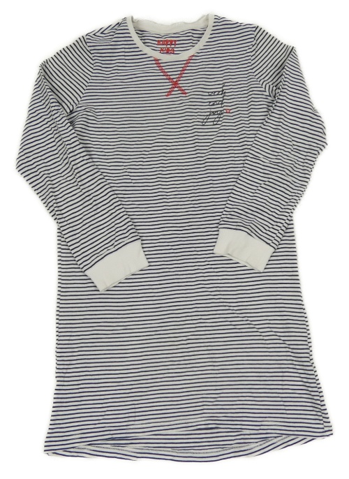 Bielo-čierna pruhovaná nočná košeľa s nápisom Tchibo
