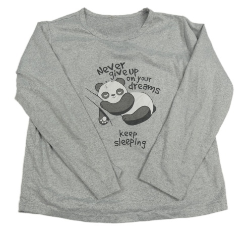 Sivé melírované pyžamové tričko s pandou a nápismi SHEIN