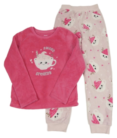Ružovo-svetloružové chlpaté pyžama s hrnečky