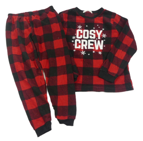 Červeno-čierne kockované fleecové pyžama s nápismi a vločkami