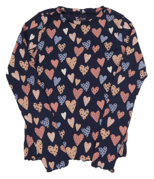 Tmavomodré rebrované pyžamové tričko so srdiečkami Tu