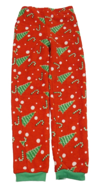 Červeno-zelené plyšové pyžamové tepláky so stromčekmi