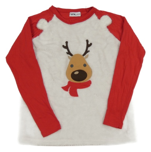 Bielo-červené chlpaté pyžamové tričko so sobom Y.F.K.