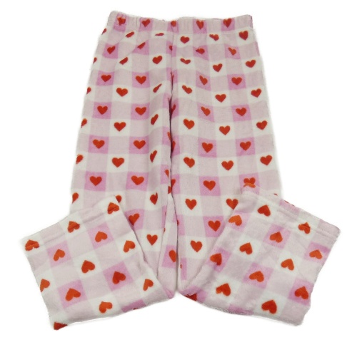 Bielo-svetloružové plyšové pyžamové nohavice so srdiečkami