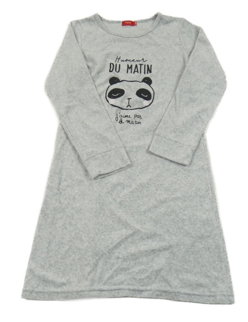 Svetlosivá melírovaná zamatová nočná košeľa s pandou a nápismi TisSAiA