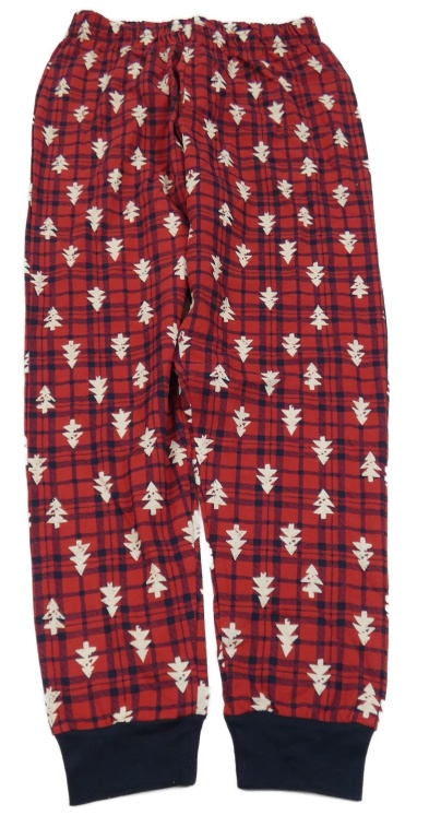 Červeno-tmavomodré kockované flanelové pyžamové nohavice so stromami