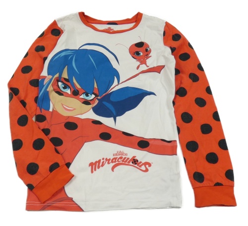 Bielo-červené pyžamové tričko s bodkami a kouzlenou Lienkou
