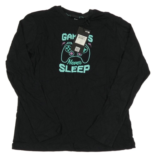 Nové - čierne pyžamové tričko s ovladačem a nápismi threadbare