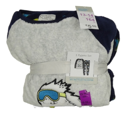 Nové - Tmavomodro-sivé chlpaté pyžama s Yettim Primark
