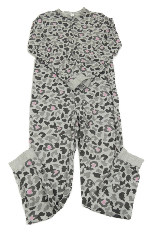 Sivo-čierny vzorovaný melírovaný overal s ružovými srdiečkami C&A