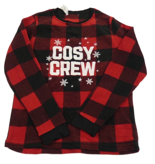 Čierno-červená kockovaná fleecová pyžamová mikina s nápisom a vločkami