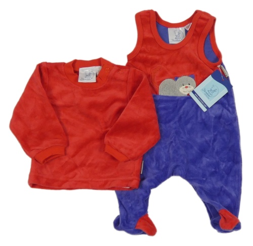 Nové - 2Set - Tmavofialovo-červené sametové dupačky s kočičkou + červená mikina Sterntaler