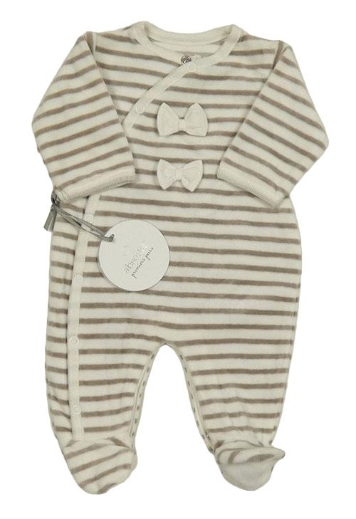 Nové - Smetanovo-hnedý pruhovaný zamatový overal s mašľami Absorba