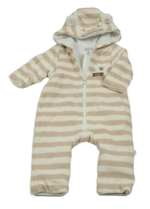 Smetanovo-béžová pruhovaná fleecová zateplená kombinéza s medvěďom a kapucňou F&F