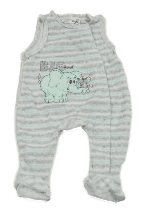 • Šedo-bílo-mentolové pruhované melírované sametové dupačky so sloníkem a myškou Ergee