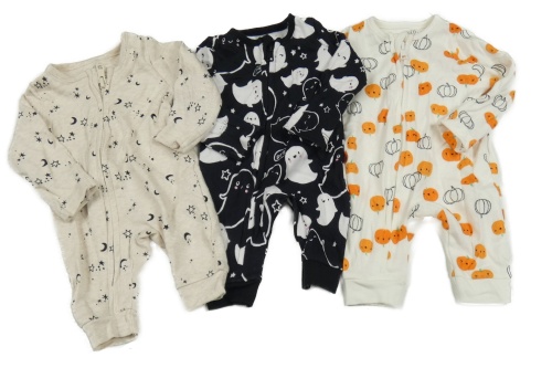 Nové - 3x - Overal - Světlebéžový melírovaný s mesiacmi a hvězdičkami, černý s duchy, bílý s dýněmi F&F