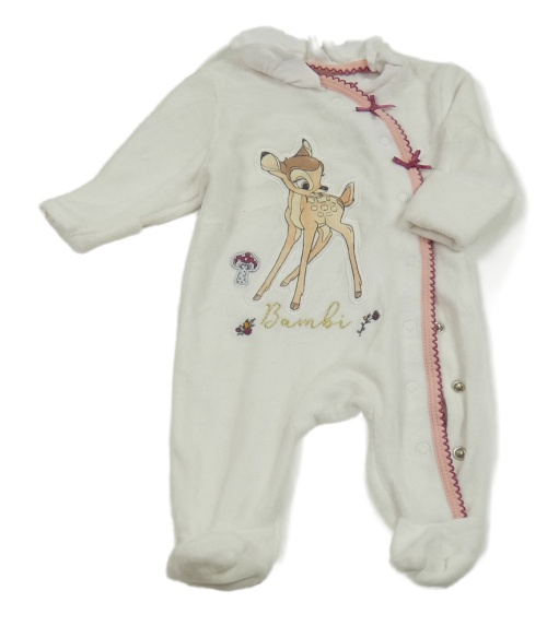 Smetanovo-ružový zamatový overal s Bambim a volánikom PRIMARK
