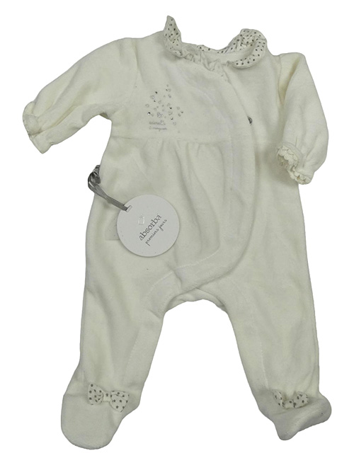 Nové - biely zamatový overal s golierikom a kamienkami