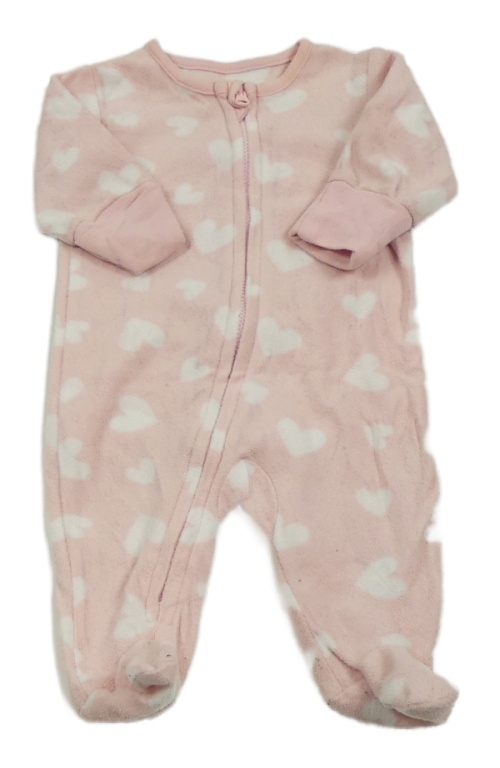 Svetloružový fleecový overal s bielými srdiečkami Matalan