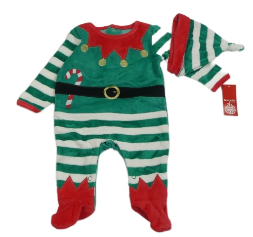 -Nové 2set- Zeleno-biely pruhovaný zamatový overal- skřítek+ čapica Dunnes