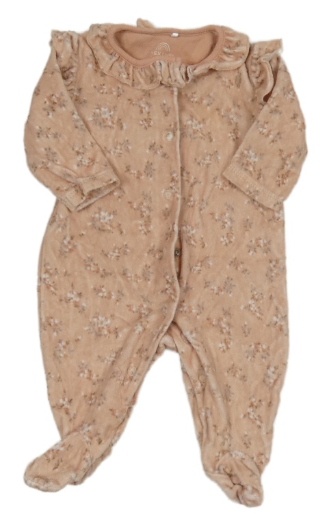 Pudrový zamatový overal s kvietkami a volánikmi Next