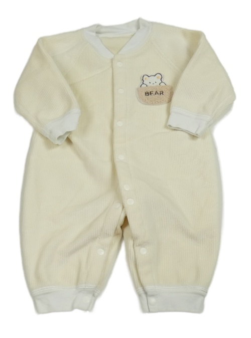 Smotanový zamatový rebrovaný overal s medvedíkom