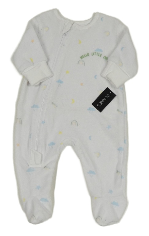 Nové - biely zamatový overal s duhami a obláčikmi a nápisom St. Bernard