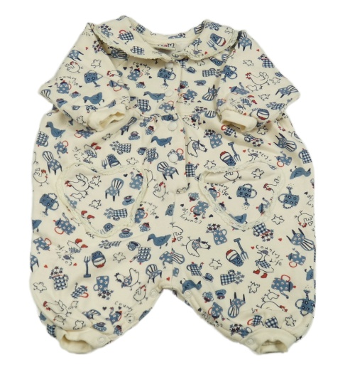 Smotanový teplákový overal s obrázkami a golierikom