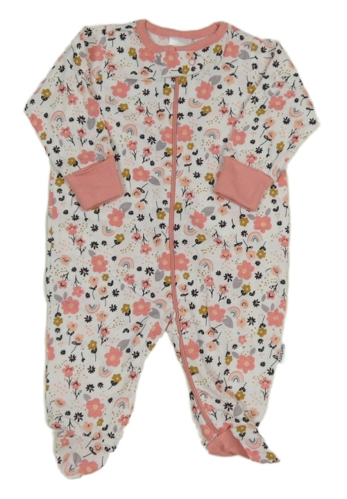 Smetanovo-ružový overal s kvietkami a duhami Gerber